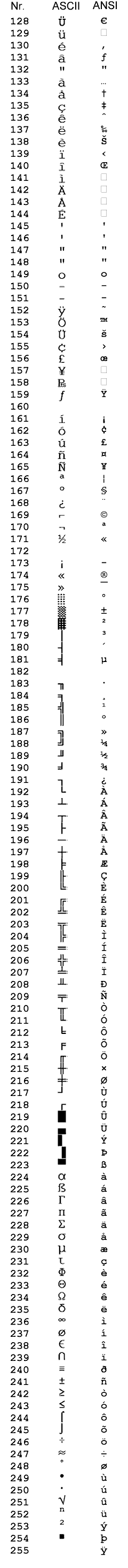 Ab 128 sind der ASCII- und der ANSI-Zeichensatz unterschiedlich. Bei