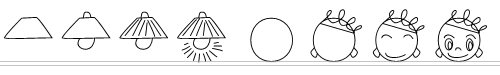 | Dann entsteht Schritt für Schritt die fertige Zeichnung. Aufbau der Figuren mit jeweils 4 Schritten. |